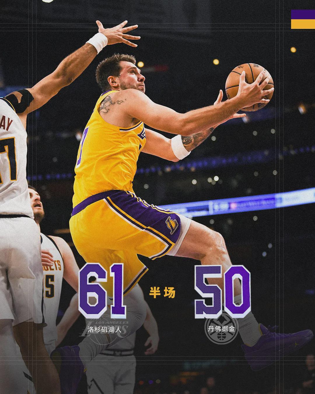 湖人前场边线球,东契奇面对夹击从容不迫,底线中距离后仰命中,只留给掘金0.5秒。小哈达威仓促出手不中,湖人127-125险胜掘金。里夫斯32分7板6助、东契奇30分11板13助3帽;戈登27分5板2帽、约基奇24分16板14助5断。